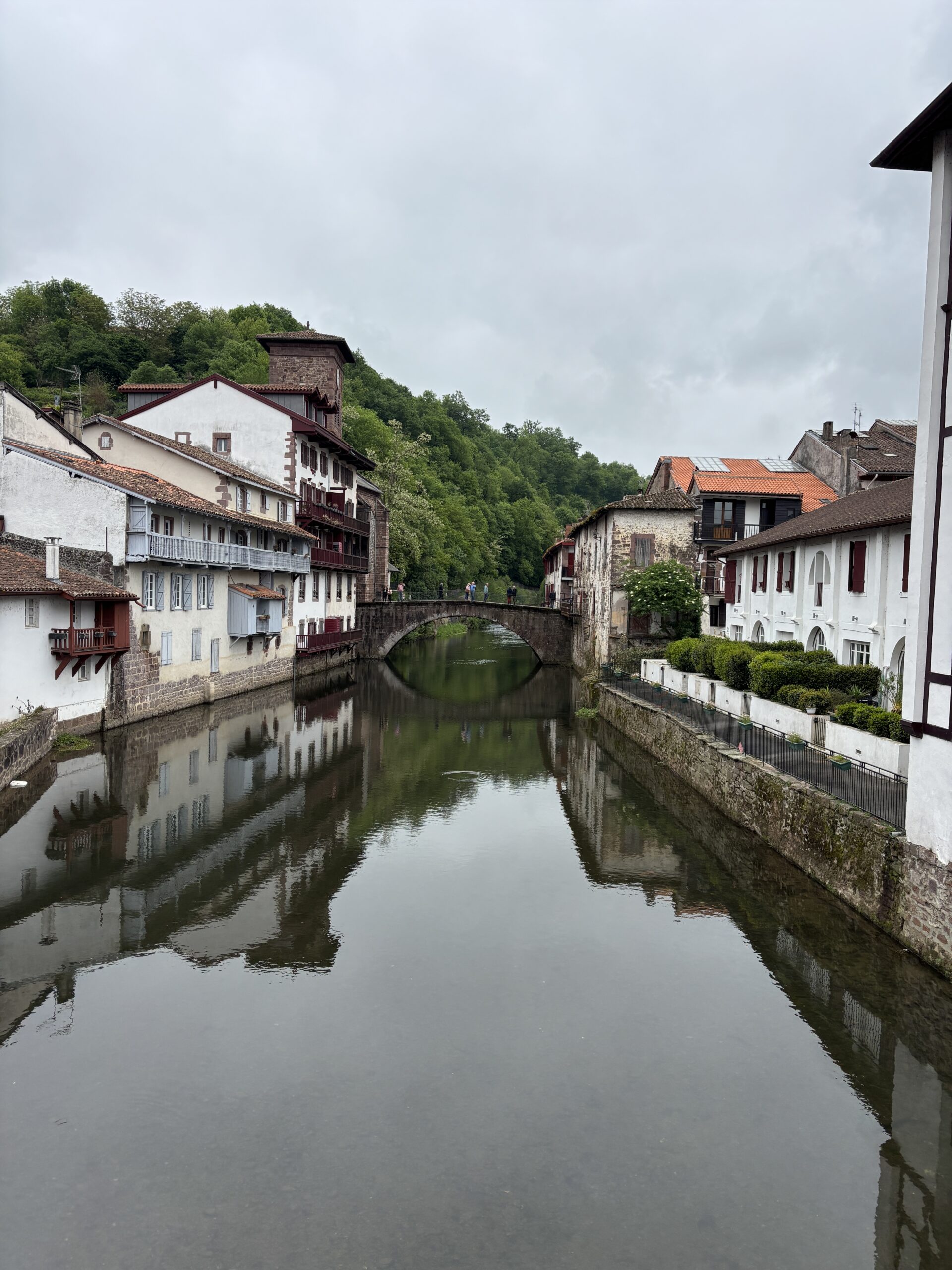 It is a small airplane and I get seated next to a fat guy who scrolls through TikTok videos about food preparation the entire flight. Next we cool our heals at Dulles for 4 hours, then board the Barcelona which lands at ~8am. 2 hours waiting in the customs line, two *somewhat* high speed trains, a barf-tastic 1.5 hour taxi ride over the Pyrenees mountains, and we finally check into our little condo in Saint Jean Pied de Port at 7ish. Joe and I collapse on our beds and sleep for 12 hours.